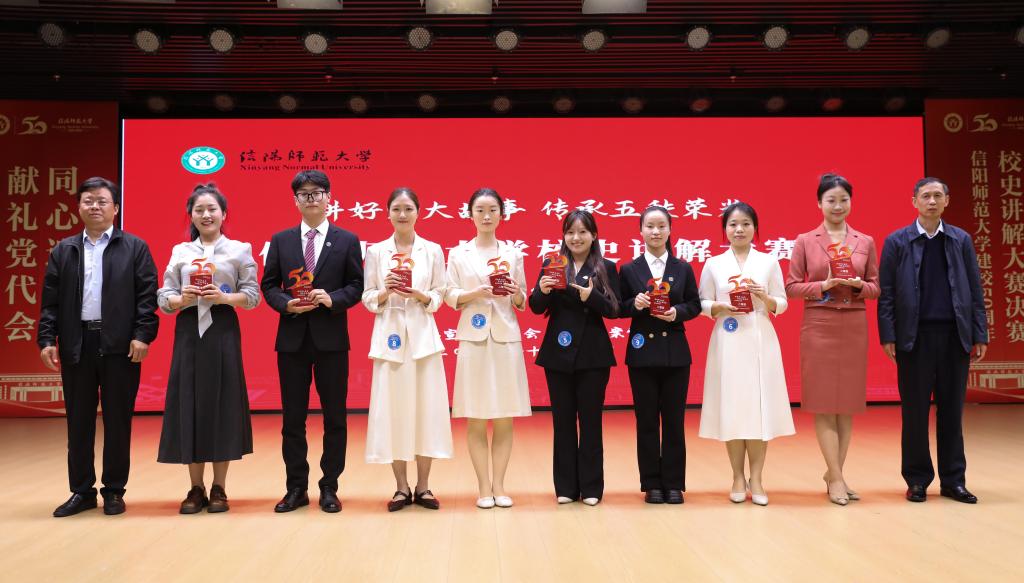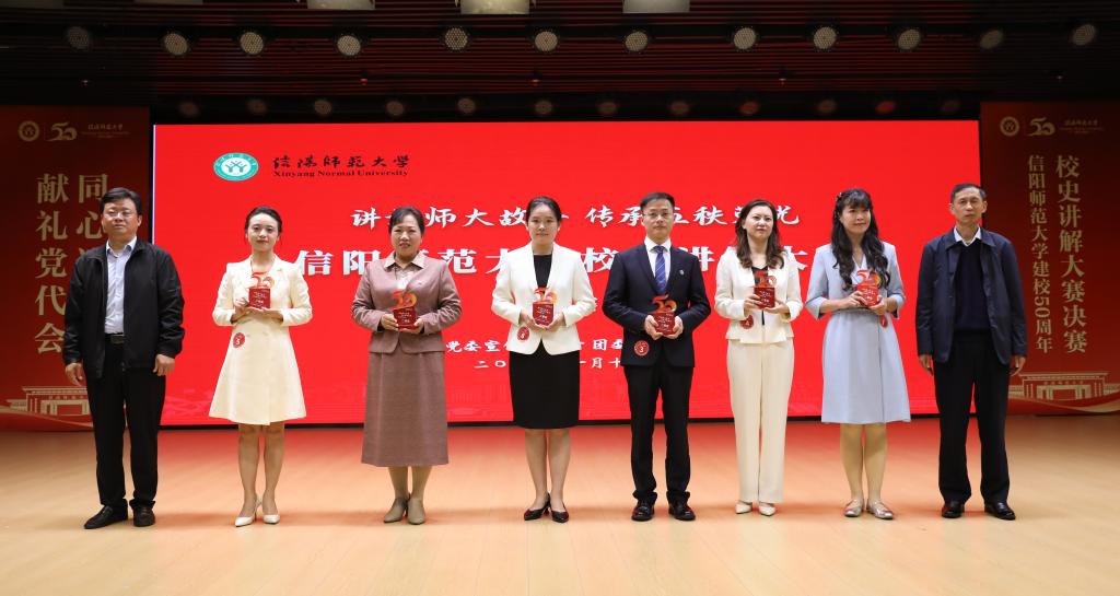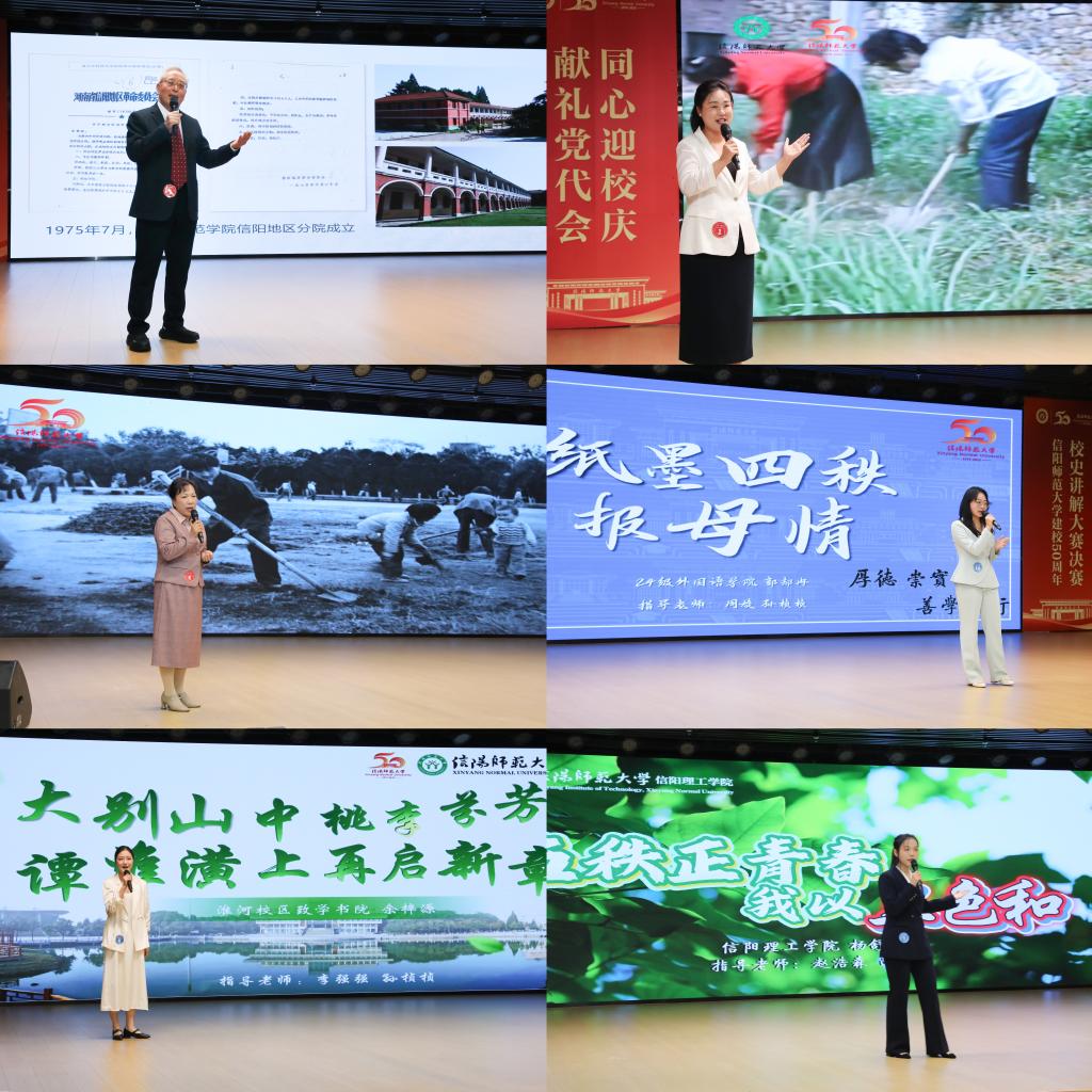 信阳师大新闻网讯 10月16日,师大校园流光溢彩、激情飞扬。一场以“讲好师大故事 传承五秩荣光”为主题的校史讲解大赛决赛,在理科楼报告厅精彩呈现。