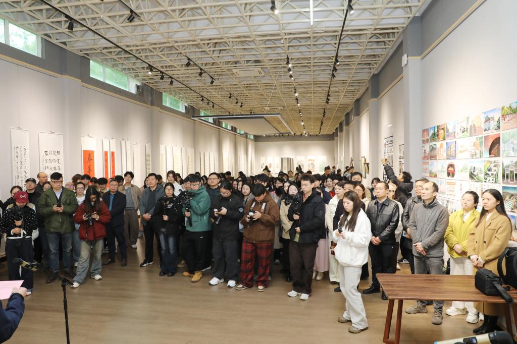 作为校友代表,中国画专业毕业生胡曌坤携工笔人物画参展,他分享了创作感悟,并回顾了在校期间的求学时光,表达了对母校的感恩。教师代表栗跃崇表示,参展作品承载着母校精神血脉,见证了师生成长与文化传承,勉励在校学生以前辈校友为榜样,努力拼搏为校添彩。